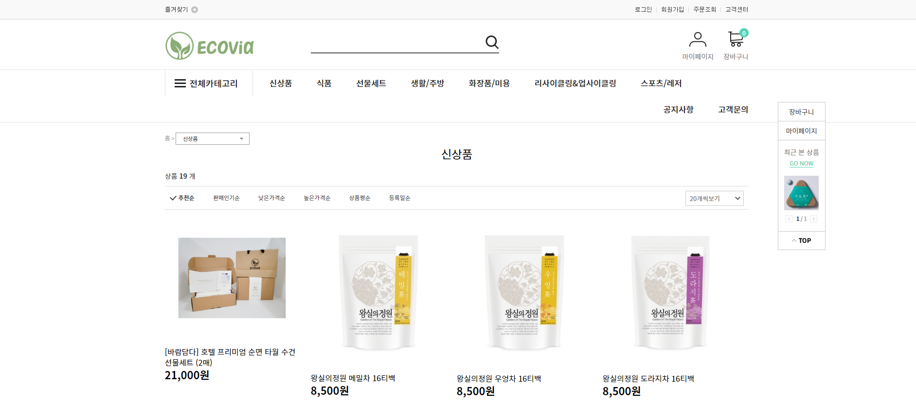 오늘은 디자인 스킨 실제 적용 사례 쇼핑몰 에코비아를 소개합니다.