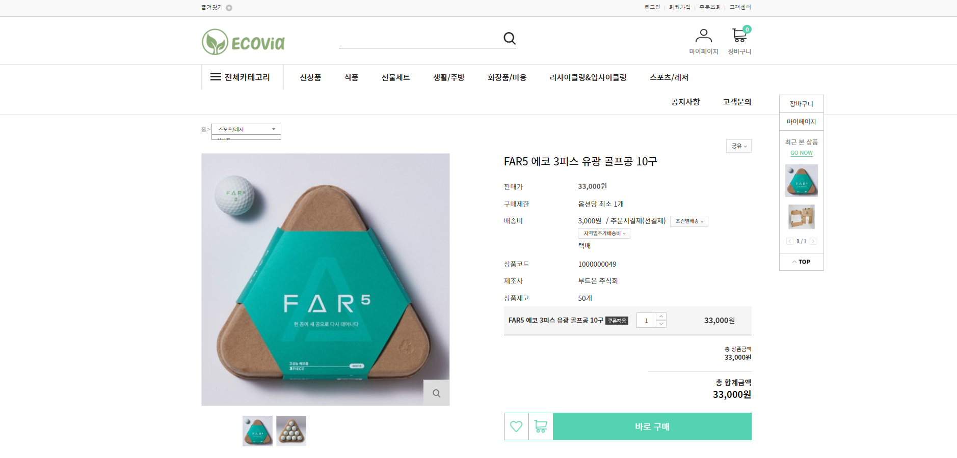 생활/주방/ 스포츠/ 레저 상품을 판매하는 에코비아는