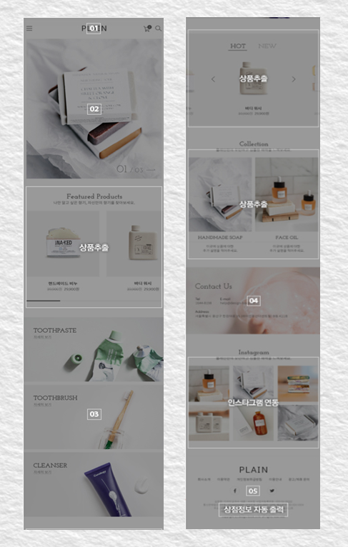 ◆플레인 스킨의 상품 목록 및 상세페이지 영역