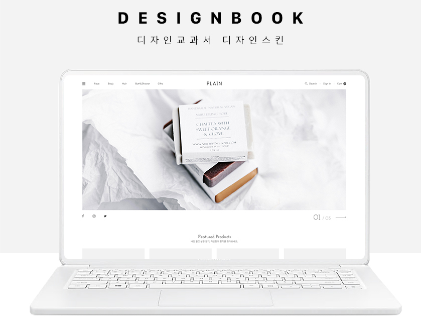 디자인교과서의 수많은 스킨 중에서도 플레인 스킨으로 세팅한 쇼핑몰이에요.