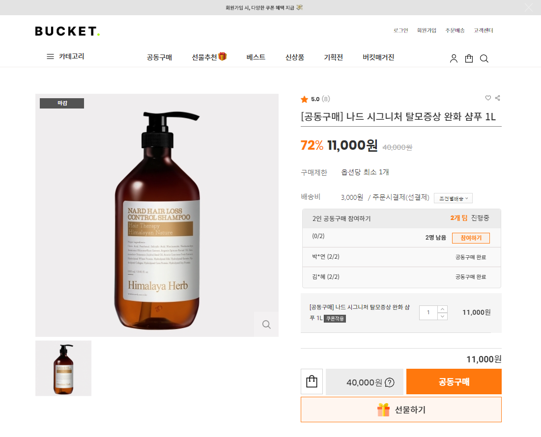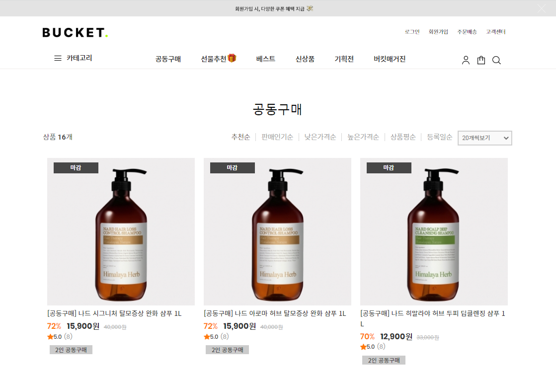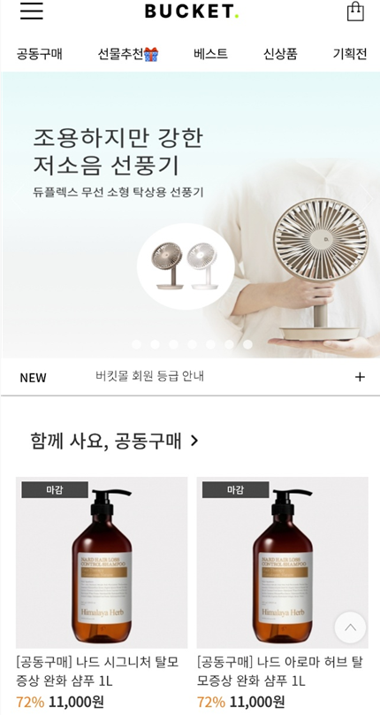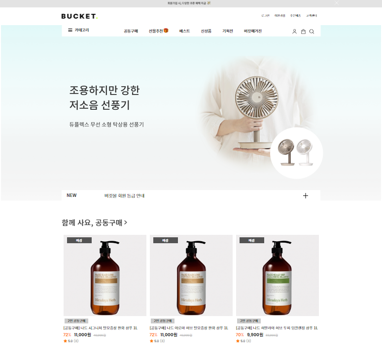 공동구매 상품 및 생활용품 판매하는 버킷몰