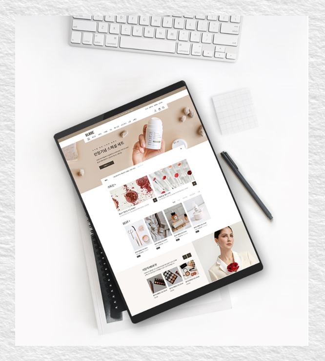 디자인교과서의 수많은 스킨 중에서도 블랑 스킨으로 세팅한 쇼핑몰이에요.
