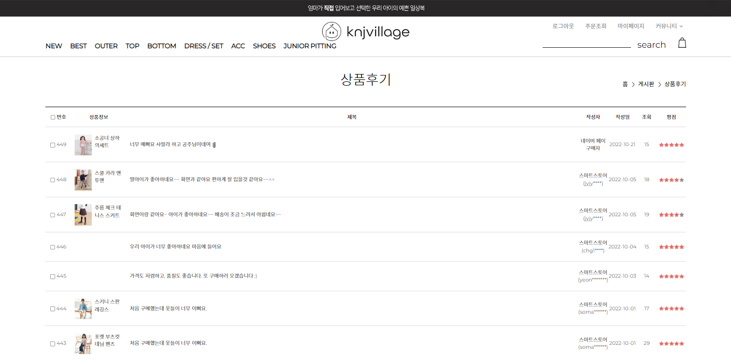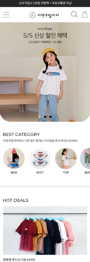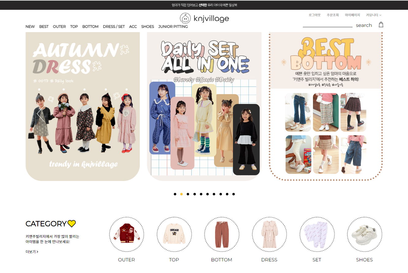 오늘은 디자인 스킨 실제 적용 사례 쇼핑몰 키앤주빌리지를 소개합니다.